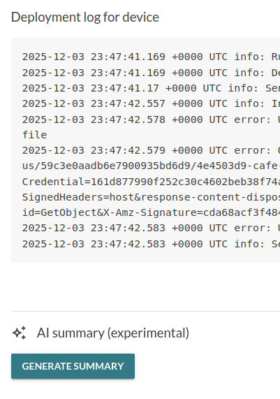 For a given deployment log, users can now use an LLM for analysis. The LLM will attempt to summarize: